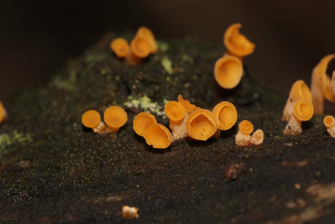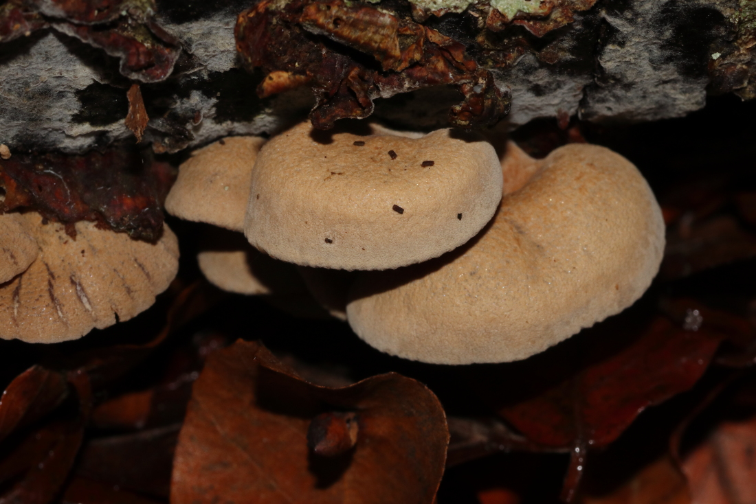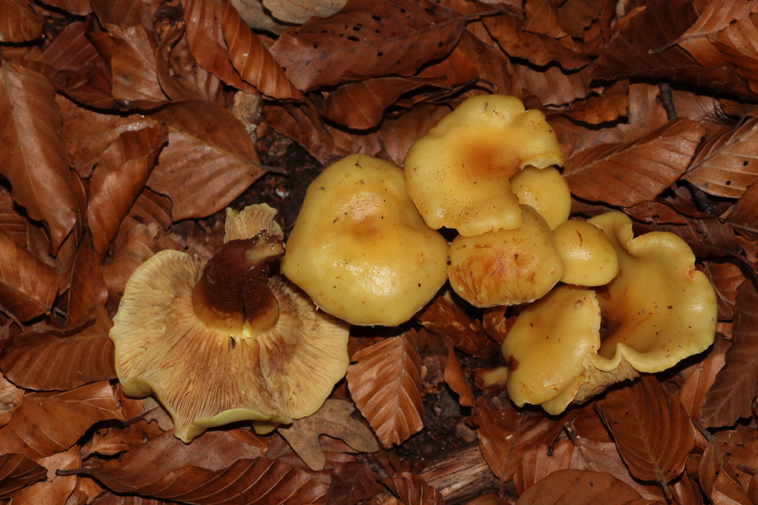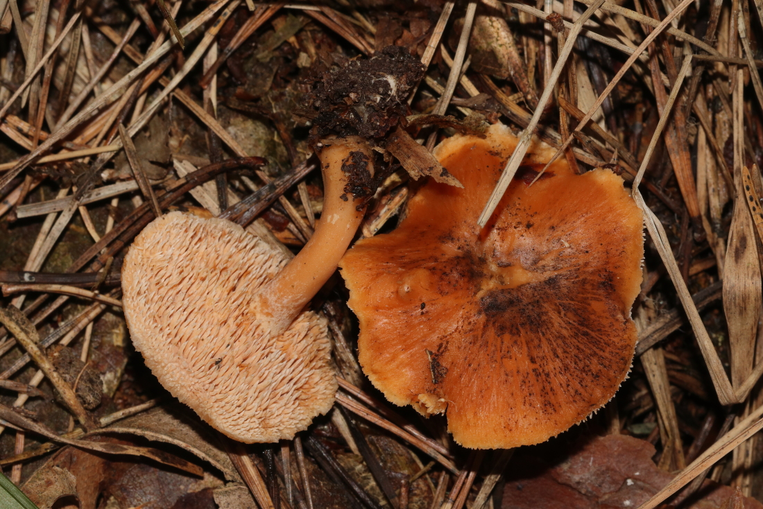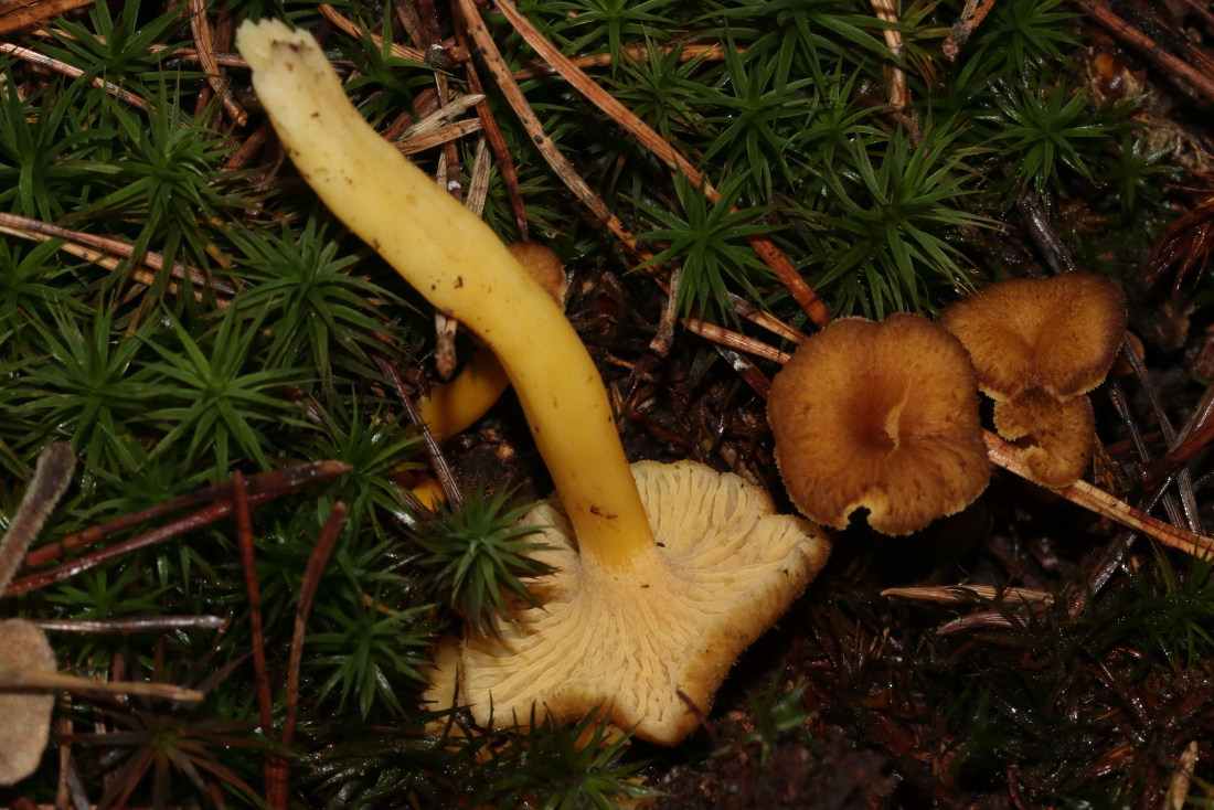 En el pinar de pino silvestre encontramos Craterellus tubaeformis aún formándose también rúsulas y otros géneros como Calocera y Ramaria.