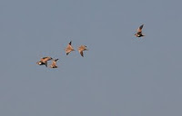 Leímos en prensa que se iba a realizar una salida ornitológica por las estepas de La Rioja para ver especialmente gangas y ortegas. Contactamos con un grupo de amigos de la ornitología que desde Logroño realizan a menudo salidas para ver aves. Conocimos a Diego, Oscar, José Félix y Jesús, quienes nos enseñaron varias zonas en las cercanías de Alfaro. Allí avistamos las esperadas gangas y ortegas comiendo en las estepas riojanas.