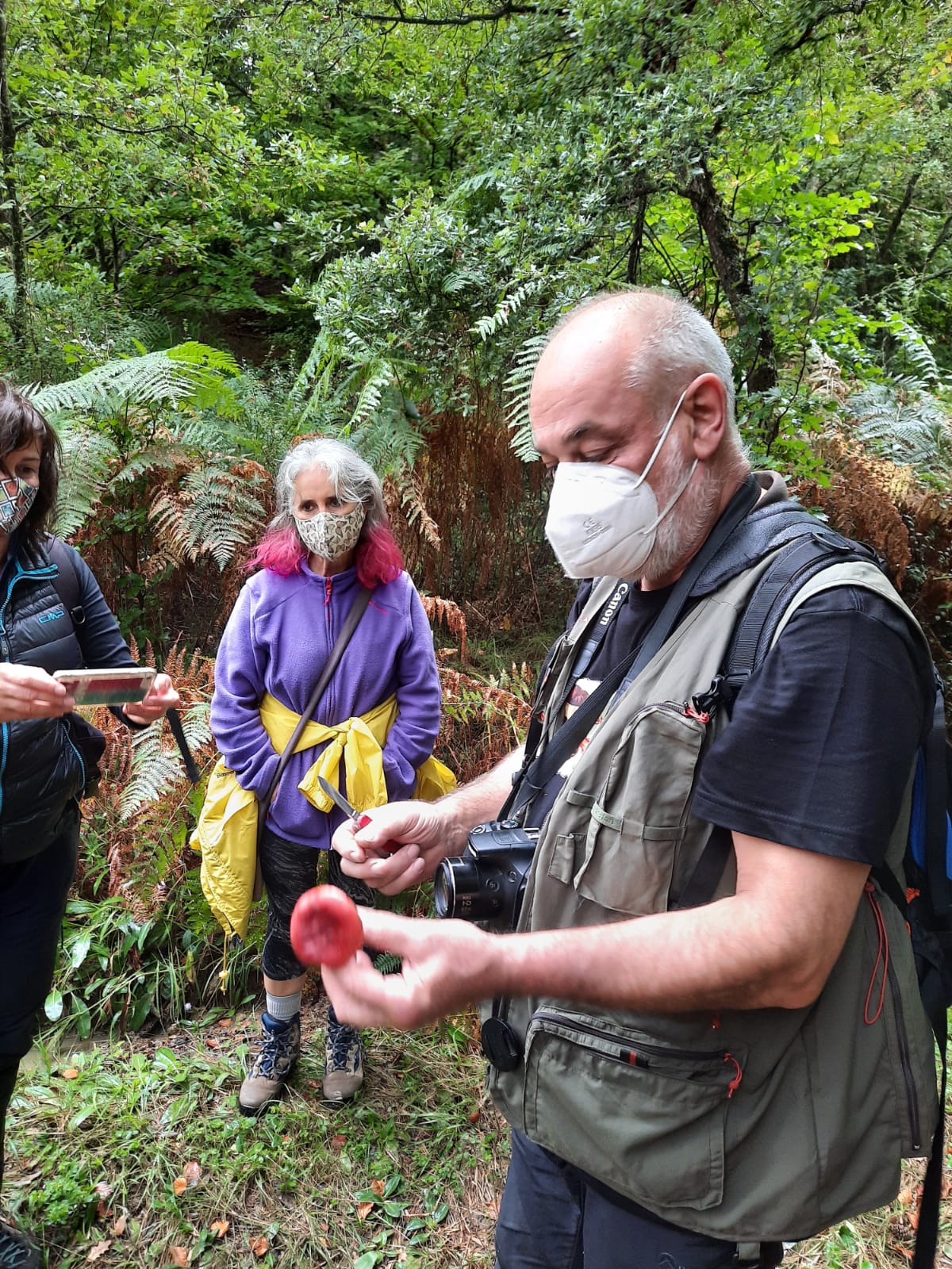 Tras los saludos, menos afectuosos que en ocasiones anteriores, dadas las circunstancias y enmascarados como es debido, comenzamos dando un repaso (condensado) a la biología de los líquenes, cuando nos pareció que la cosa quedaba más o menos clara nos desplazamos hasta el jardín de Santa Catalina.
