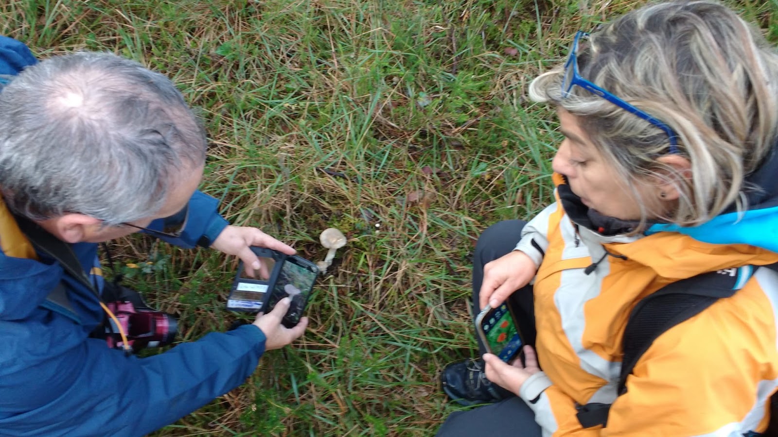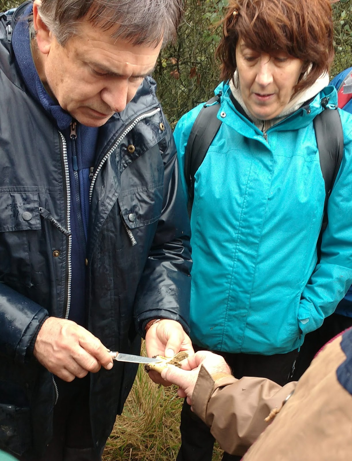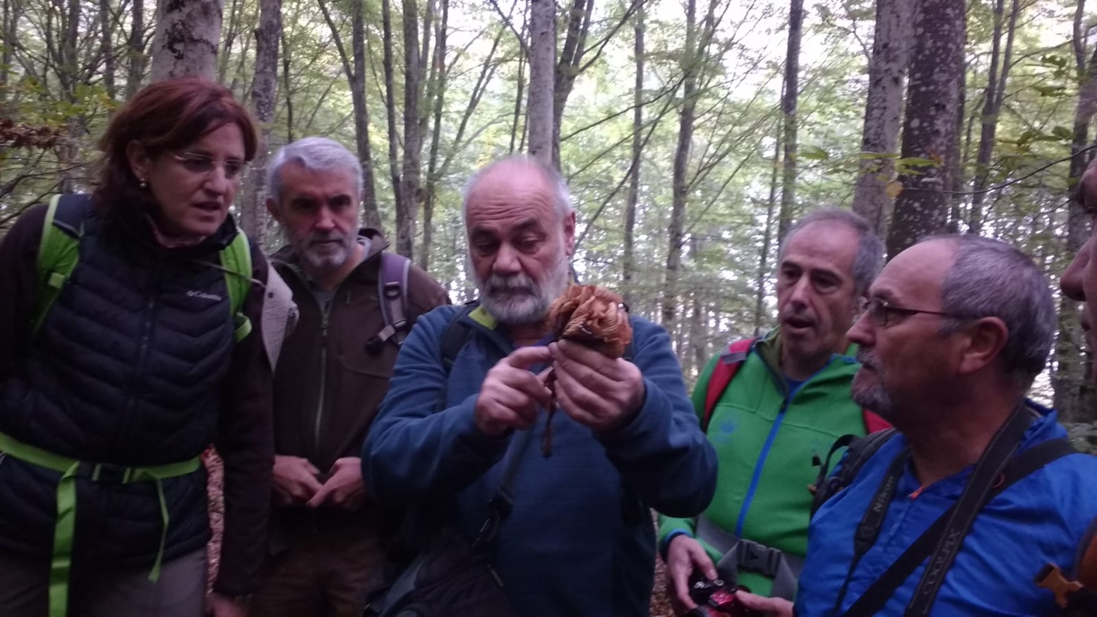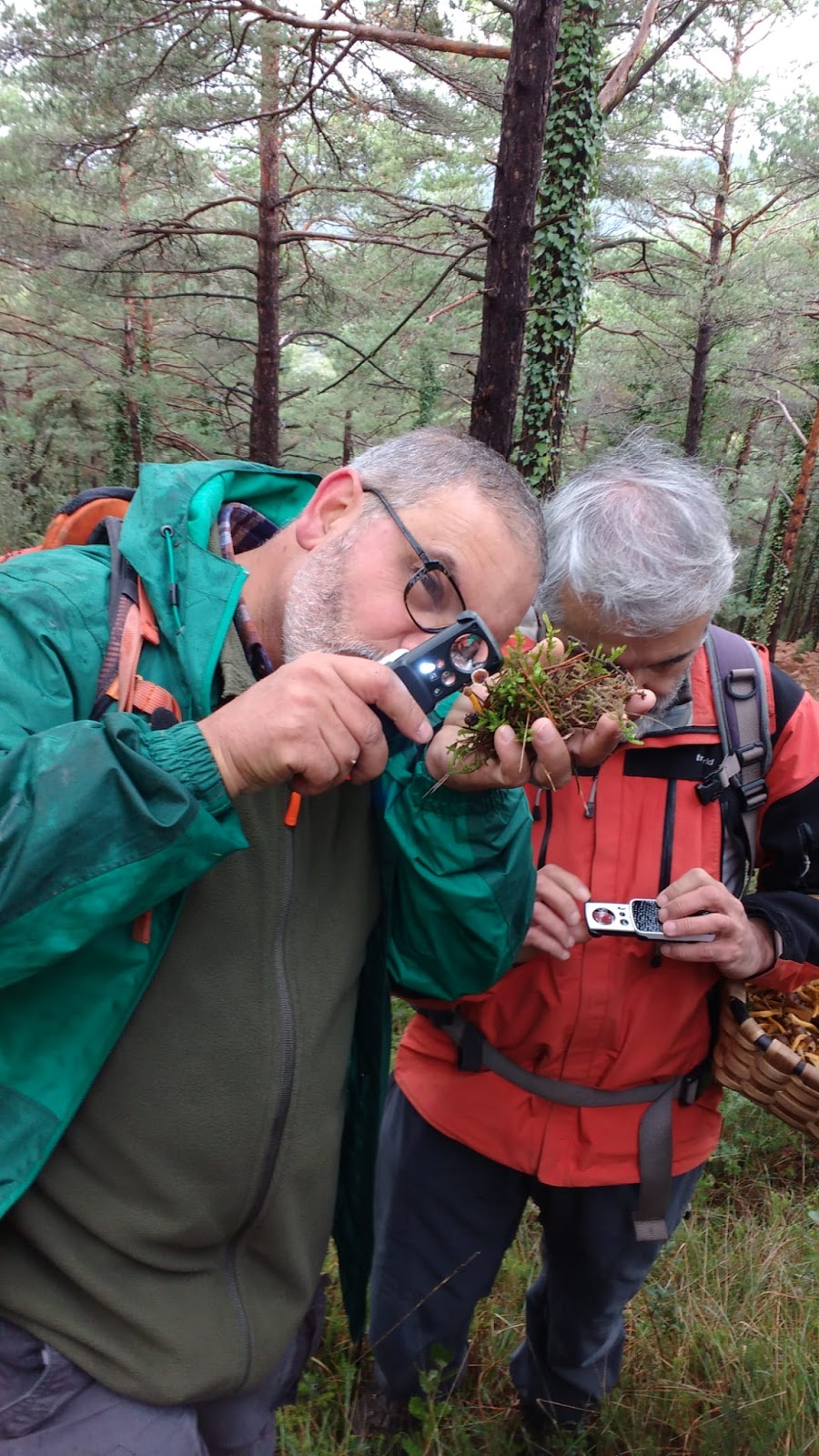 Como en anteriores ocasiones los asistentes con la ayuda de claves y guías, intentaron determinar género y en ocasiones especie de los ejemplares que Pedro recolectó, a pesar de las inclemencias meteorológicas, en este caso en hábitat de carrascas y pinos, lo cual ocasiono por parte de todos mayor esfuerzo ya que no estábamos tan acostumbrados a ver esas especies, como las que veníamos viendo hasta ahora de hayedos.