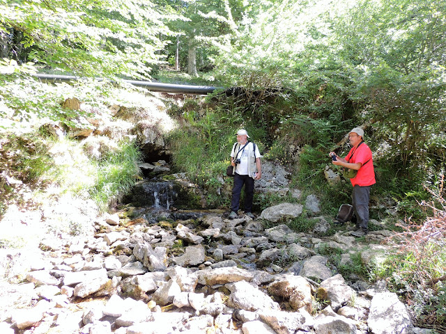 Tras pasar por el antiguo pueblo minero de Barruelo de Santullán, y por el de Brañosera, considerado éste el primer ayuntamiento de España, cuando en el año 824, y formando entonces parte del Reino de Asturias, se le otorgó la primera carta puebla, llegamos al lugar donde dejar los coches, también conocido como El Refugio, por la ruina de un Parador Nacional que tras ser construido, nunca se estrenó; había en ese momento mucha niebla, que Ana auguró que probablemente levantaría, y no hacía ni mucho frío ni viento. Ante el panorama de la niebla y la incertidumbre, se hicieron dos grupos, uno para subir con Pello y los del Herbario digital, siguiendo el camino y un precioso arroyo de montaña, y otro, capitaneado por Ana, que se fue a ver pueblos y románico, por los alrededores.
