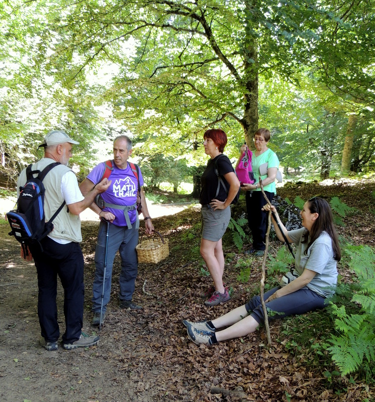 Ya el descenso del coche fue emocionante al encontrarnos a algo más de mil metros de altitud en un pueblecito precioso, de una pieza, con casas de piedra, que se fundían con el terreno por su color parecido, varios nidos de cigüeña con cigoñinos siendo alimentados constantemente por su padres, al lado de nuestra casa y a la altura de los ojos, un aire puro y una luz maravillosa, en un valle verde y envolvente. Se respiraba una paz alegrada por todos nuestros compañeros, que nos esperaban, y una de esas casas era la nuestra, donde dejamos los equipajes y fuimos a dar un paseo hasta La posada del Santuario del Carmen, un poco más elevada y apartada que la nuestra y donde se alojaban los cuatro que nos faltaban en la plaza del pueblo. Fuimos a verlos y recogerlos para cenar todos juntos en la casa de Ana, al lado de la nuestra. El paseo de diez minutos, lleno de flores y aire puro, nos encantó a todos, y nos permitió a los recién llegados estirar las piernas y apercibirnos de donde estábamos. También de irnos conociendo, ya que había algunos socios nuevos, con los no habíamos hecho antes excursiones de este tipo y con los que disfrutamos de un intensa vida social y naturalista, y al partir éramos ya íntimos. La cena de picoteo en casa de Ana no hizo sentirnos a todos como en casa, relajados y felices, de vacaciones entre amigos.