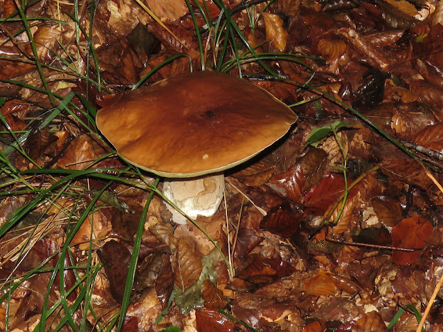 En un pequeño rodal, Pedro ha visto a la chivata: Clitopilus prunulus. Hemos dado cinco pasos buscando Boletus, pero no ha sido tan sencillo… El primer hongo se ha hecho de rogar un poco mas…