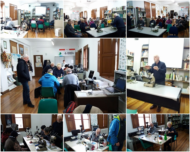 El objetivo era conocer y aprender a manejar el material óptico del que disponemos en el instituto (5 lupas binoculares y 2 microscopios, uno de ellos trinocular) para utilizarlo en los diferentes trabajos que los socios realicen.