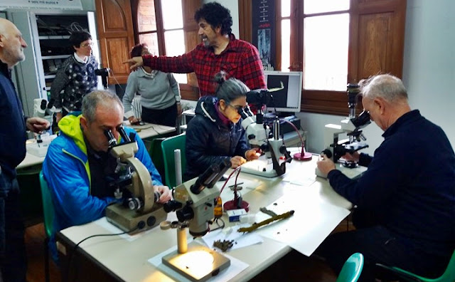 Además del material del que el IAN-ANI dispone, contamos con otros dos microscopios más y otra lupa binocular cedidos para la ocasión por Egibide y por uno de los socios, de forma que tuvimos material suficiente para trabajar todos nosotros.