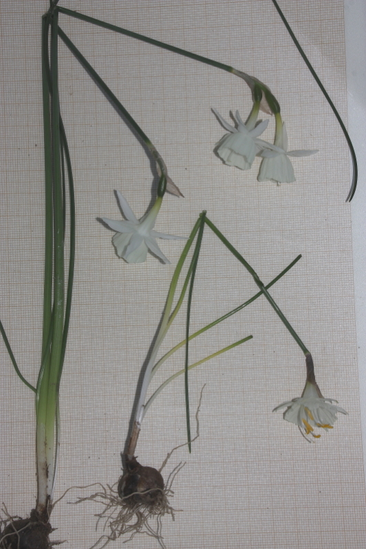 Ya hacia mediodía llegamos a San Román de los Montes (Toledo) y cerca de la urbanización Serranillos Playa, comimos al estilo campestre, en el suelo y saboreando un queso de cabra de Rota, que nos dio renovadas fuerzas. Dando muchos rodeos y acompañados del gruir de cientos de grullas que pasaban en formación de uve hacia el norte, vimos el N. x barrae (N. bulbocodium x N. cantabricus).