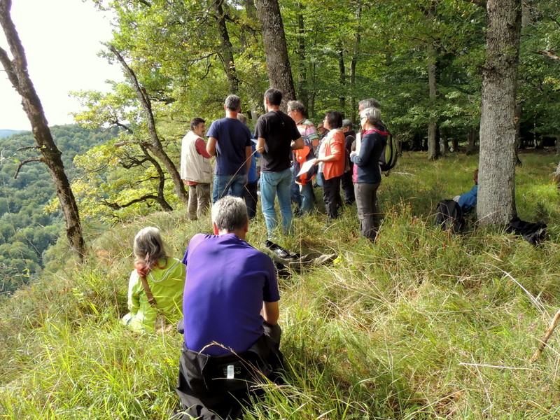 Cuando nos reunimos todos en lo alto, nos sentamos a dibujar el esquema del barranco y su vegetación, que con su relieve y orientaciones diversas, nos ofrecía una gran biodiversidad en muy poco espacio, observando por ejemplo, una población de quejigos en la parte superior y media de la ladera orientada al sol y descendiendo, algunas encinas y en la ladera orientada al norte, hayas y robledales en la parte plana superior.