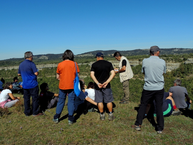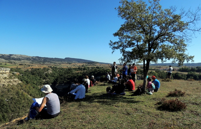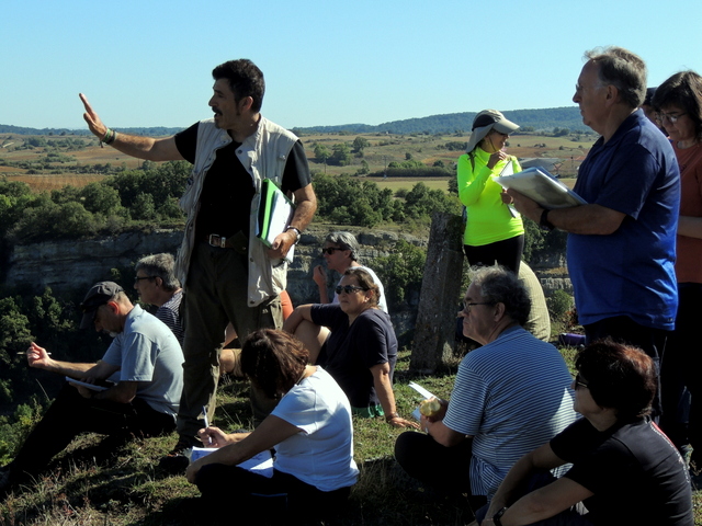 Sentados tranquilamente al borde del barranco rellenamos, en el cuaderno de campo, el esquema de la serie de vegetación. Continuando con el paseo, vimos también unas zonas erosionadas, típicas de las parameras, de gran interés biológico y botánico, ya que en ellas se mantienen especies muy singulares, como Plantago discolor, Festuca hystrix, Allium schoenoprasum y, en lugares similares de las cercanías, el endemismo Arenaria vitoriana.