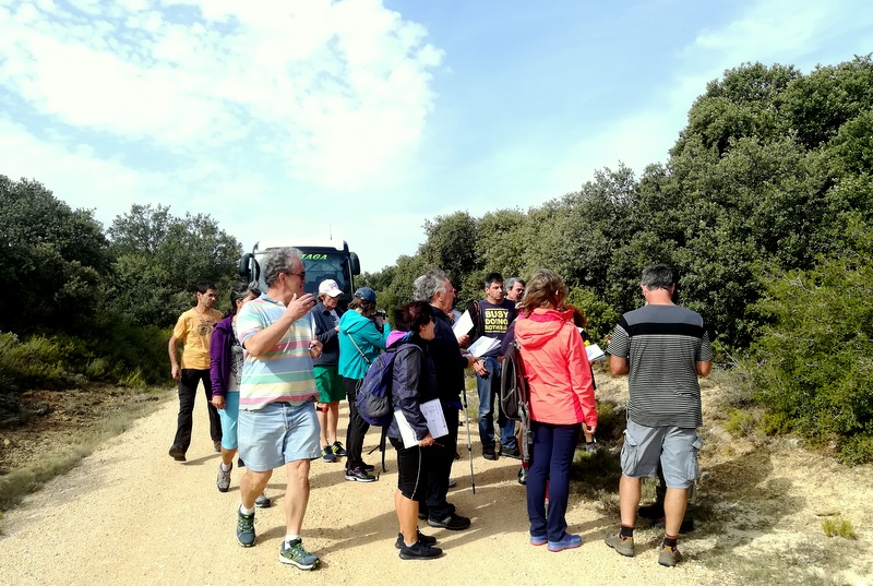Tercera parada en el bosquecillo de Navaridas, recuerdo del paisaje antiguo de la humanizada Rioja Alavesa. Aquí ya aparece el carrascal, con Quercus ilex ssp. ballota, la coscoja y plantas aromáticas propias de climas mas cálidos y secos, como el romero. Vimos también la transformación evolución de las zonas mas bajas en cultivos de cereal y viñedo. Los puntos tratados fueron: