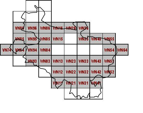 El área de estudio ha sido Álava junto con los enclaves de Treviño (Burgos) y Orduña (Bizkaia). Con ayuda del Mapa de hábitats EUNIS del País Vasco (Gobierno Vasco, 2005), en cada cuadrícula UTM de 100 km2 se identificaron las manchas existentes de las formaciones arboladas mencionadas anteriormente. Las cuadrículas fueron adjudicadas a los participantes, estandarizando el esfuerzo de campo a realizar en cada una de forma aproximadamente proporcional a la superficie ocupada por las manchas potenciales. Así, se planteó la realización de un mínimo de 5 medias jornadas (4-5 horas de duración) en aquellas cuadrículas con mayor superficie boscosa (29 a 37 km2), 2 en las de menor (2 a 6 km2), y 3-4 en las que presentaban coberturas intermedias. Del total de 50 cuadrículas en el área de estudio, se prospectaron finalmente las 35 seleccionadas previamente por disponer de hábitats potenciales (figura 2).