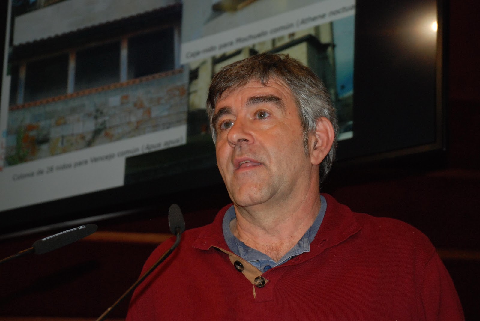 Tras una pausa para un café proseguimos la jornada con la ponencia impartida por Joseba Carreras responsable de Espacios Naturales y Biodiversidad de la Diputación Foral de Álava, titulada “Iniciativas para la protección de fauna en edificaciones de Álava”, mostró el trabajo que su departamento ha realizado poniendo distintos y variados ejemplos de actuaciones en esta provincia con casos de presencia de fauna en edificios. Explicó entre otras iniciativas la de los Pagos por Servicios Ambientales, puesto en marcha por su departamento hace poco tiempo y que va tomando impulso poco a poco.