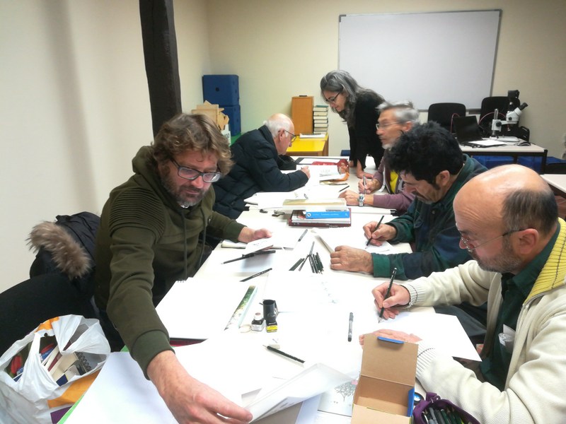 Y la tercera actividad simultánea de la mañana del domingo fue el Taller de dibujo de naturaleza “Iñaki Zorrakin” a cargo de Beatriz Alonso. Bea mostró un buen número de obras de ilustradores a lo largo de la Historia poniendo de manifiesto la evolución de estilos y maneras de ilustración de la naturaleza. A continuación se practicó brevemente con algunas técnicas de ilustración….se nos quedó corto el taller pero fue estimulante y enriquecedor.