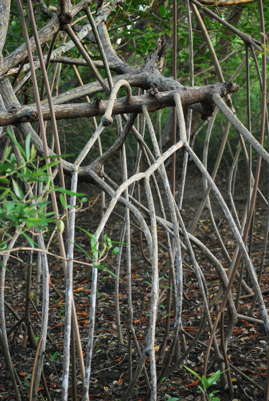 El manglar es el contacto entre el continente y el océano. Las plantas terrestres invaden el lecho marino, desarrollando un amplio repertorio de estrategias que les permiten superar los tres principales retos que les plantea la vida marina: la salinidad, la falta de oxígeno y la inestabilidad de los sustratos. Así, con un poco de atención, encontramos árboles que evitan caerse apoyándose con falsas patas sobre el fango, en tanto que otros sacan tubitos a la superficie con los que respiran las raíces. Incluso encontramos árboles cuyas hojas “potabilizan el agua marina” y se vuelven blancas a mediodía al recubrirse de la sal que extraen. En el Pacífico nicaragüense, son varias las especies arbóreas que constituyen este ecosistema. Aunque se las denomina colectivamente “mangle”, son cuatro los géneros que podemos encontrar: Avicenia, Conocarpus, Laguncularia y Rizophora. Asociado a este ecosistema hay una rica fauna, entre la que las tortugas marinas o los cocodrilos son los más populares, pero también hay varias especies de aves exclusivas de este hábitat. La sobreexplotación forestal y los cultivos marinos son sus principales amenazas.