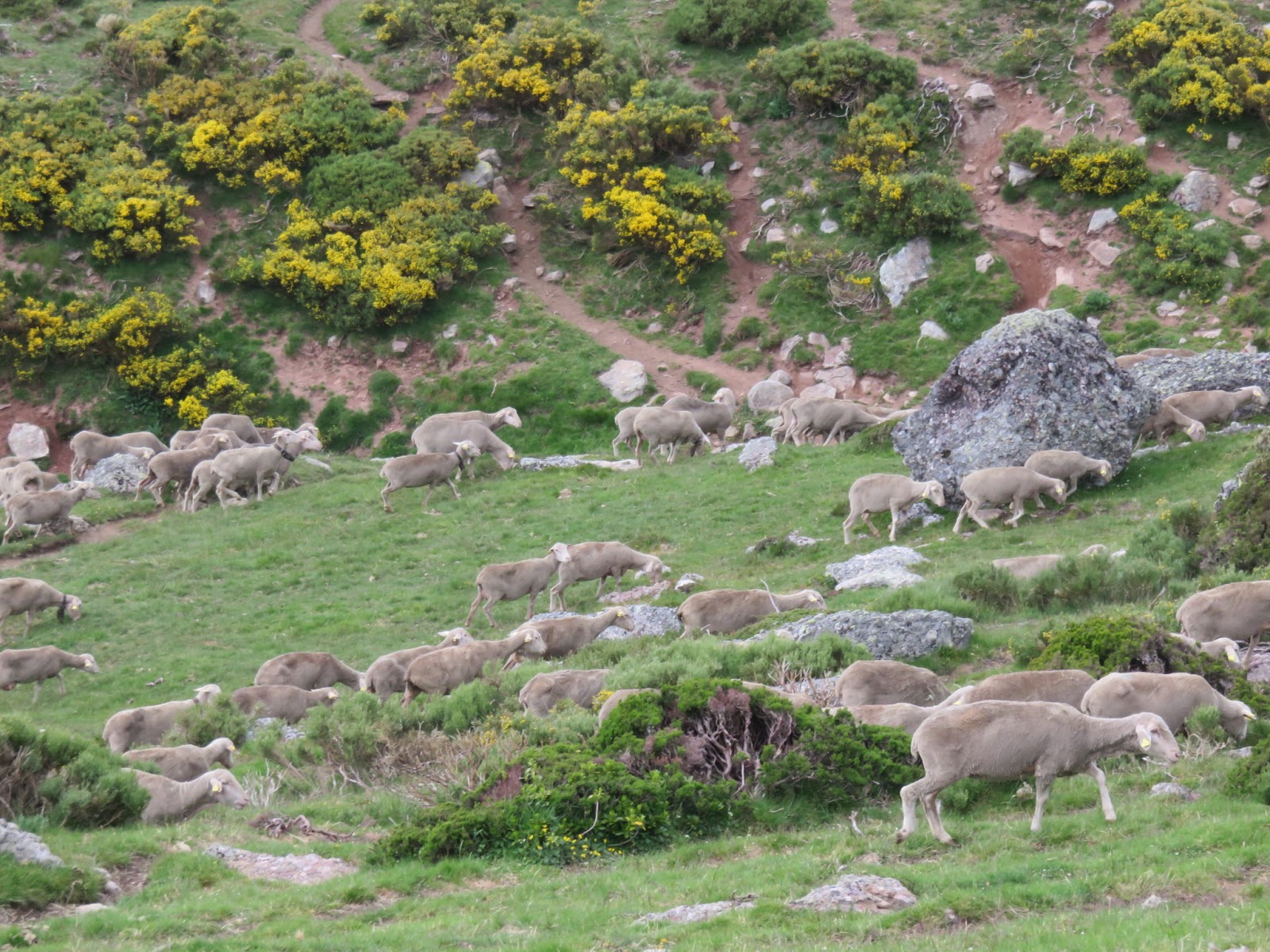 El sábado, tras desayunar cada uno en su casa, vimos algunos salir a un pastor de la suya, con vacas y perros, apostados al lado de otra que es la iglesia del pueblo. Era el día que salíamos todos con nuestra propia comida en la mochila para acercarnos a El Golobar, a 8 kilómetros de Santa María, y desde allí ascender al pico Valdecebollas, de 2.139 metros de altura, por un camino fácil que no tiene pérdida, y lleno de interés paisajístico y botánico.