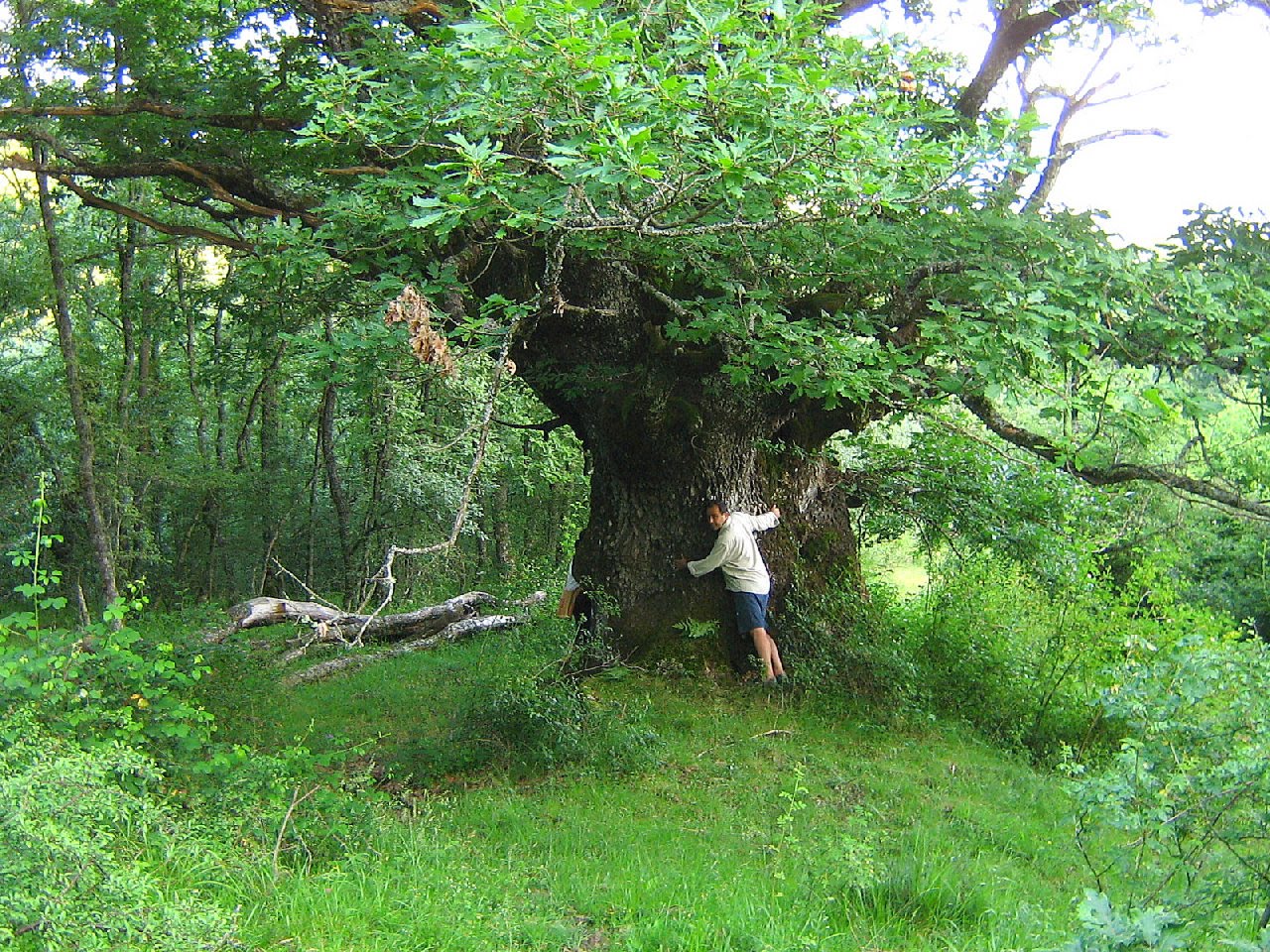 El último domingo de abril nos reunimos un grupo de 24 personas para recorrer la zona del pantano proyectado en Korrosparri. Entre otras cosas pudimos ver el inmenso roble albar de la foto (8,20 m de circunferencia, llamado ‘El abuelo’ por los lugareños, de hasta mil años de edad).