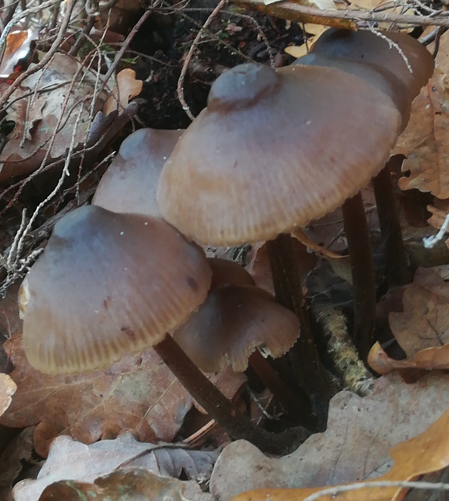 Seguimos paseando hacia un castañar cercano y allí encontramos una buena cantidad de pardillas (Lepista nebularis) y nos explicó Alfonso como distinguirlas de la toxica falsa pardilla (Entoloma lividum).