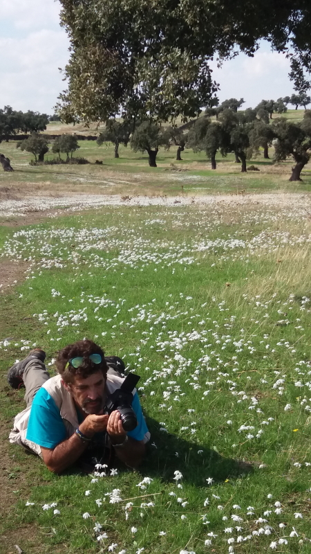 Ibamos marchando cuando nos encontramos a otro aficionado fotografiando narcisos y, al saludarle, descubrimos que era Rafael Tormo, profesor de la Universidad de Badajoz y amigo en las redes sociales de Antonio.
