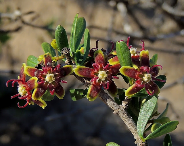 Fuimos a comer a la playa de La Marina y a la tarde, paseo por las dunas, por un cercano pinar y viendo la Periploca laevigata, el Pancratium maritimus y el florido Eucaliptus gomphocephala.