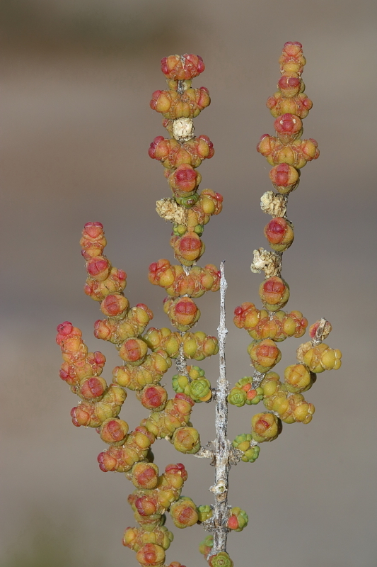 Vimos la Sarcocornia perennis ssp. alpinii y Halocneum strobilaceum. Aprovechamos para para ir comiendo dátiles de las palmeras del camino.
