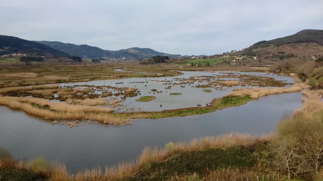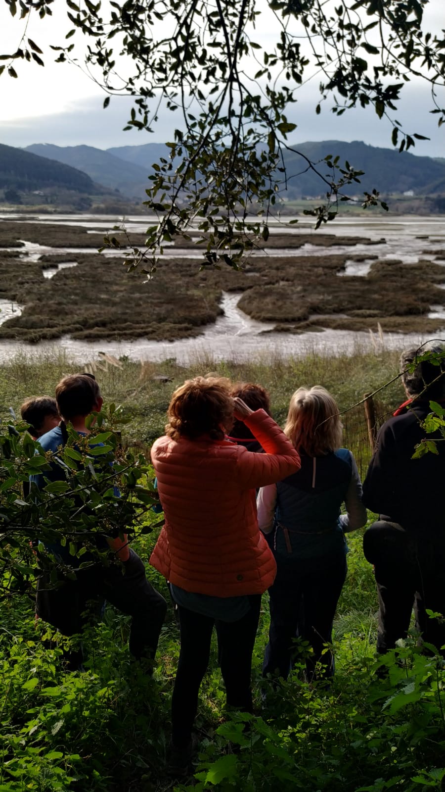 Desde la curva de Kanala, bajo el olor de las mimosas, el paisaje de la marisma es una pasada. Hemos vuelto a desenvainar los telescopios para volver a observar a la pescadora, esta vez desde más cerca, y a un colimbo grande.